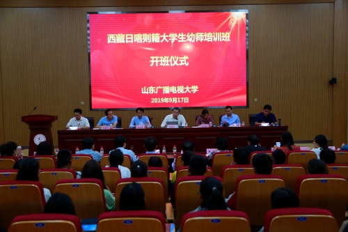 9月17日下午,西藏日喀则籍大学生幼师培训班开班仪式在我校高新校区203报告厅举行。山东省发展改革委二级巡视员吴隆杰、对口支援西藏处副处长王之栋,日喀则市人社局党组副书记普布卓玛、日喀则市政府办公室科长张敏学出席仪式。学校党委委员、副校长刘兆东出席仪式并讲话。仪式由继续教育中心主任刘民杰主持。