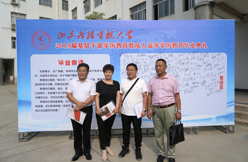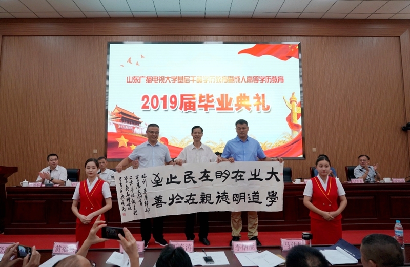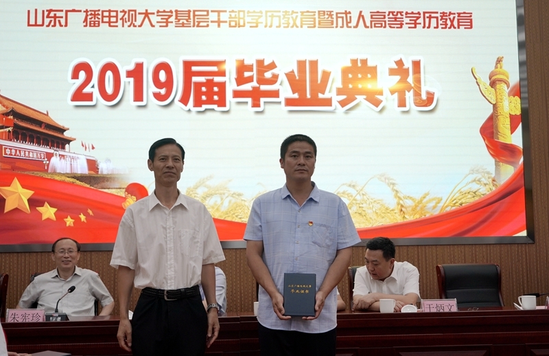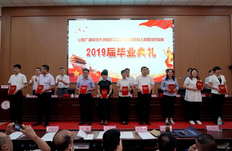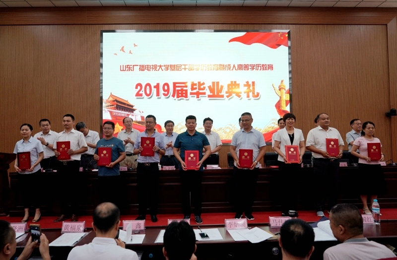 7月12日上午,山东广播电视大学基层干部学历教育暨成人高等教育2019届毕业典礼在我校高新校区203报告厅举行。山东省委组织部远程教育中心副主任巴建国、山东省教育厅民继处二级调研员于炳文、学校党委领导班子成员出席典礼。典礼由副校长庄维平主持。