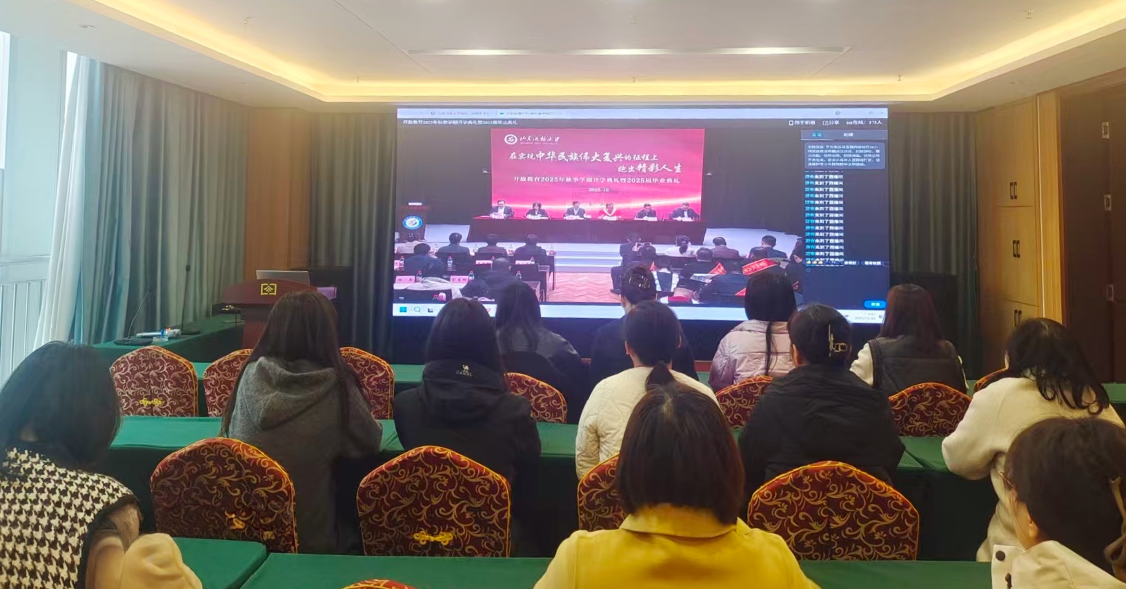 典礼采用线上线下相结合的形式,学校相关部门负责人、工作人员及部分师生代表现场参加了典礼,全省开大(电大)体系校领导、教师及2025年秋季新生、2025届毕业生线上观看了典礼。