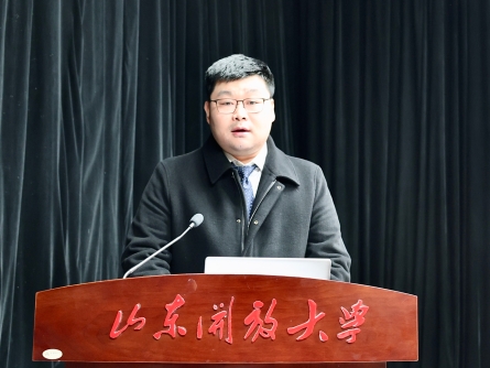 徐文谋以《扎根齐鲁沃土 共赴终身成长之约》为题,为新生讲开学第一课。他回溯了学校46年的发展历程,指出党的二十届四中全会为“十五五”时期教育发展擘画了宏伟蓝图,明确提出了“统筹教育强国、科技强国、人才强国建设”“一体推进教育科技人才发展”的战略部署,这正是学校自1979年创办以来始终践行的发展内核。如今,学校已构建了覆盖10个学科门类的64个本专科专业体系,通过灵活的教学模式、优质的资源建设和完善的支持服务,精准对接山东产业发展需求,成为区域人才培养的重要基地。建校至今,学校累计培养本专科毕业生超百万,开展非学历教育逾500万人次,以实际行动为筑牢区域高质量发展的人才根基贡献力量。他强调,全会提出的“深入推进数字中国建设”为学校改革发展指明了方向,学校将紧跟国家战略部署,持续锚定社会需求深化教育教学改革,以数智化赋能资源优化配置,构建开放协同的育人生态,在教育与科技的深度融合中,培育更多适配新质生产力发展的高素质技术技能人才。他向广大学子提出三点殷切希望:一是追求理想、厚德为先,做“德润齐鲁”的践行者;二是勤学善思、精技强能,做“终身学习”的奋斗者;三是勇担使命、实干笃行,做“强国建设”的贡献者,并勉励大家将个人理想融入国家发展大局,在齐鲁大地上书写无愧于时代的精彩人生。