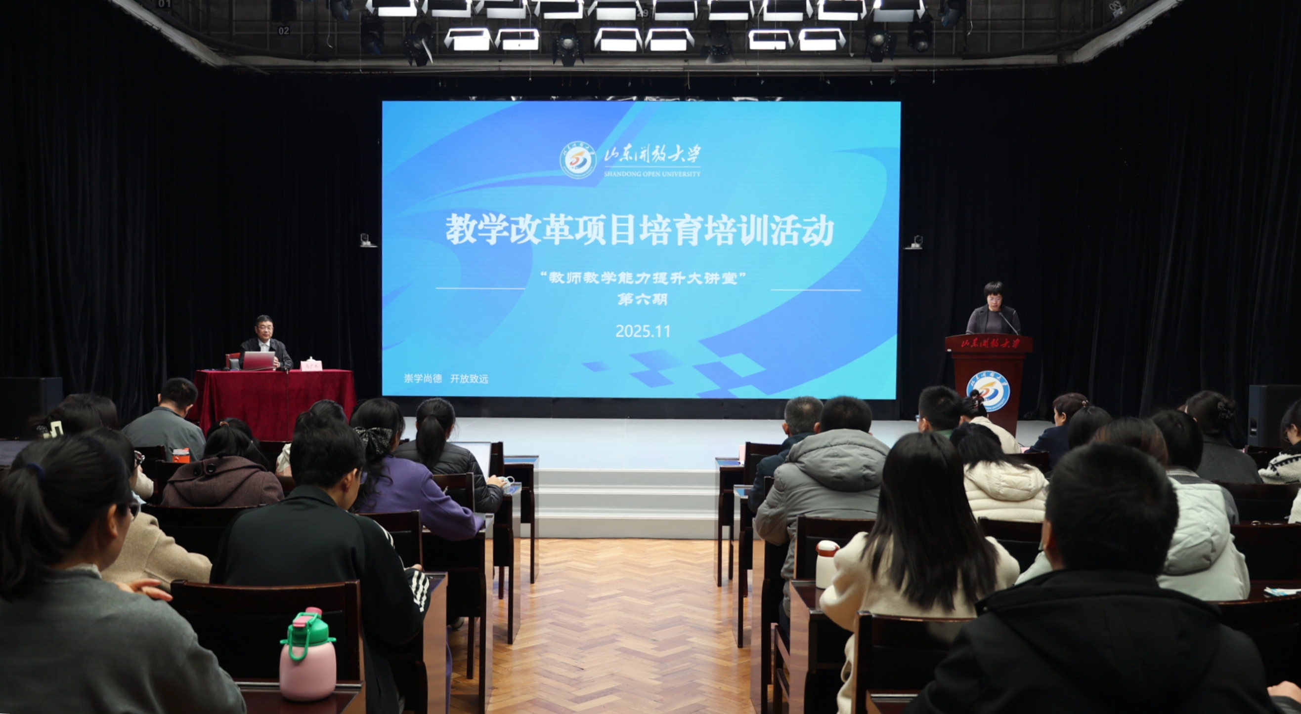马广水以《教育强国建设背景下开放大学教育改革及教学成果奖的培育》为题,从教育改革、教改立项、教学成果奖的内在逻辑,教改立项、教学成果培训要坚持目标导向和问题导向,依托教改项目培育教学成果等三方面分享了教育改革及教学成果奖培育的实践经验。教务处负责人宣读了《山东开放大学关于公布2025年度教育教学改革项目立项结果的通知》,并领学了《山东开放大学教育教学改革项目管理办法》。