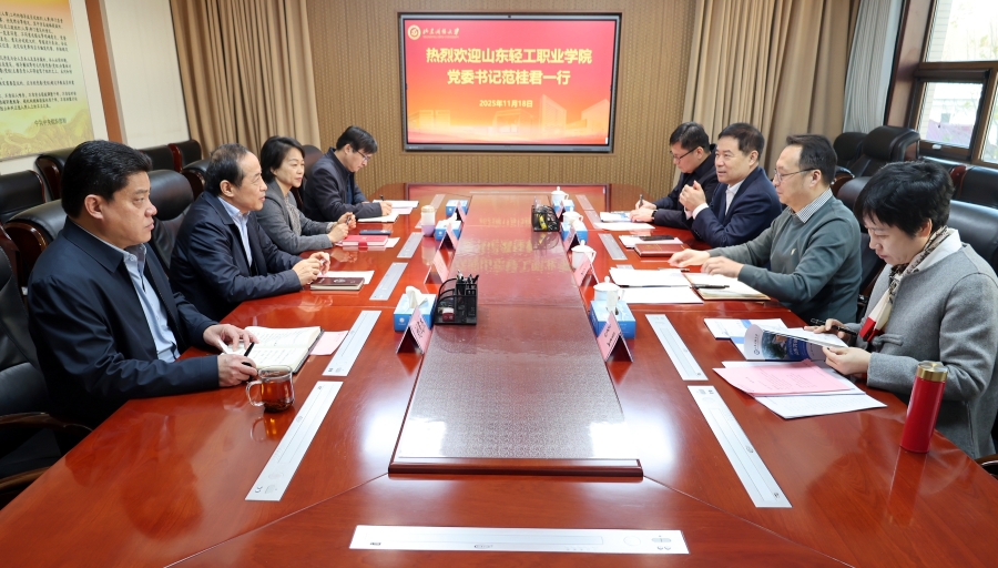 11月18日,山东轻工职业学院党委书记范桂君一行来我校座谈交流。学校党委副书记、校长司家军主持座谈会,党委委员、副校长宁继红参加座谈。