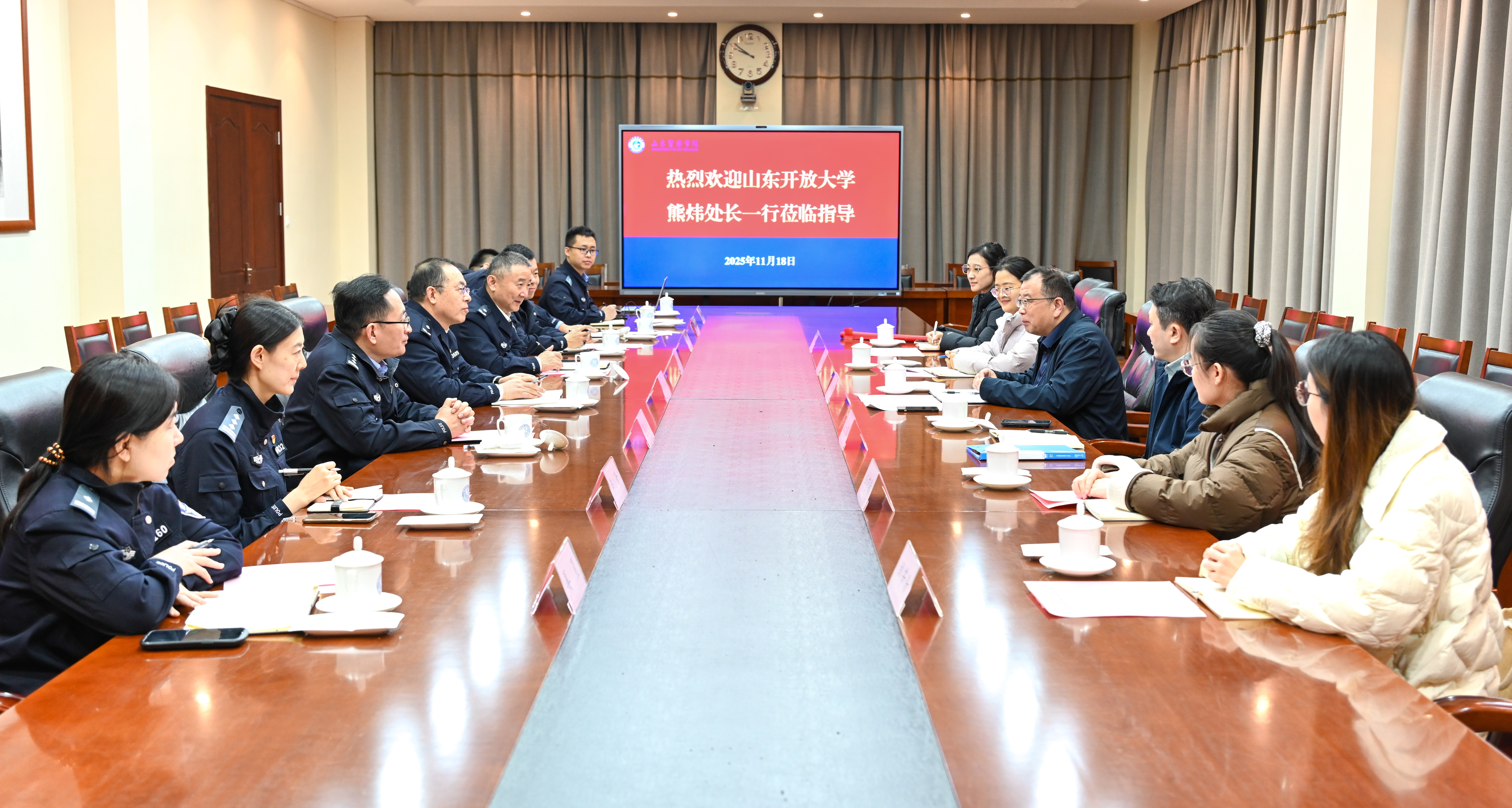 为进一步发挥党建引领作用,推动党建与业务工作深度融合、互促共进,11月18日上午,人事处党支部赴山东警察学院开展“对标竞进”专题调研主题党日活动。山东警察学院党委委员、副院长张传伟,党委委员、组织部部长孟宪炜以及两校人事处党支部全体党员参加活动。