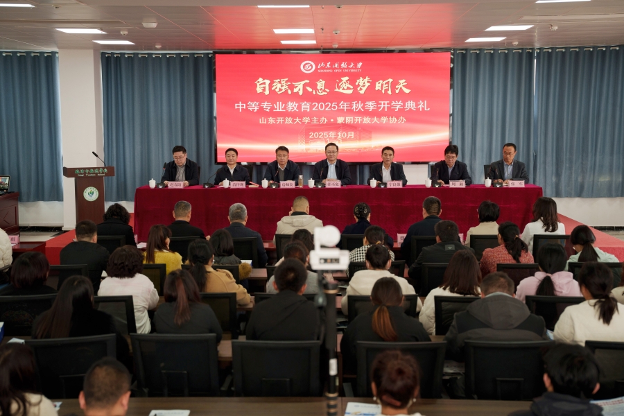 典礼采用线上线下相结合的形式。开放教育学院、临沂开放大学、蒙阴开放大学有关人员,2025级新生现场参加了典礼。全省各教学中心负责人、教师及新生线上观看了典礼。