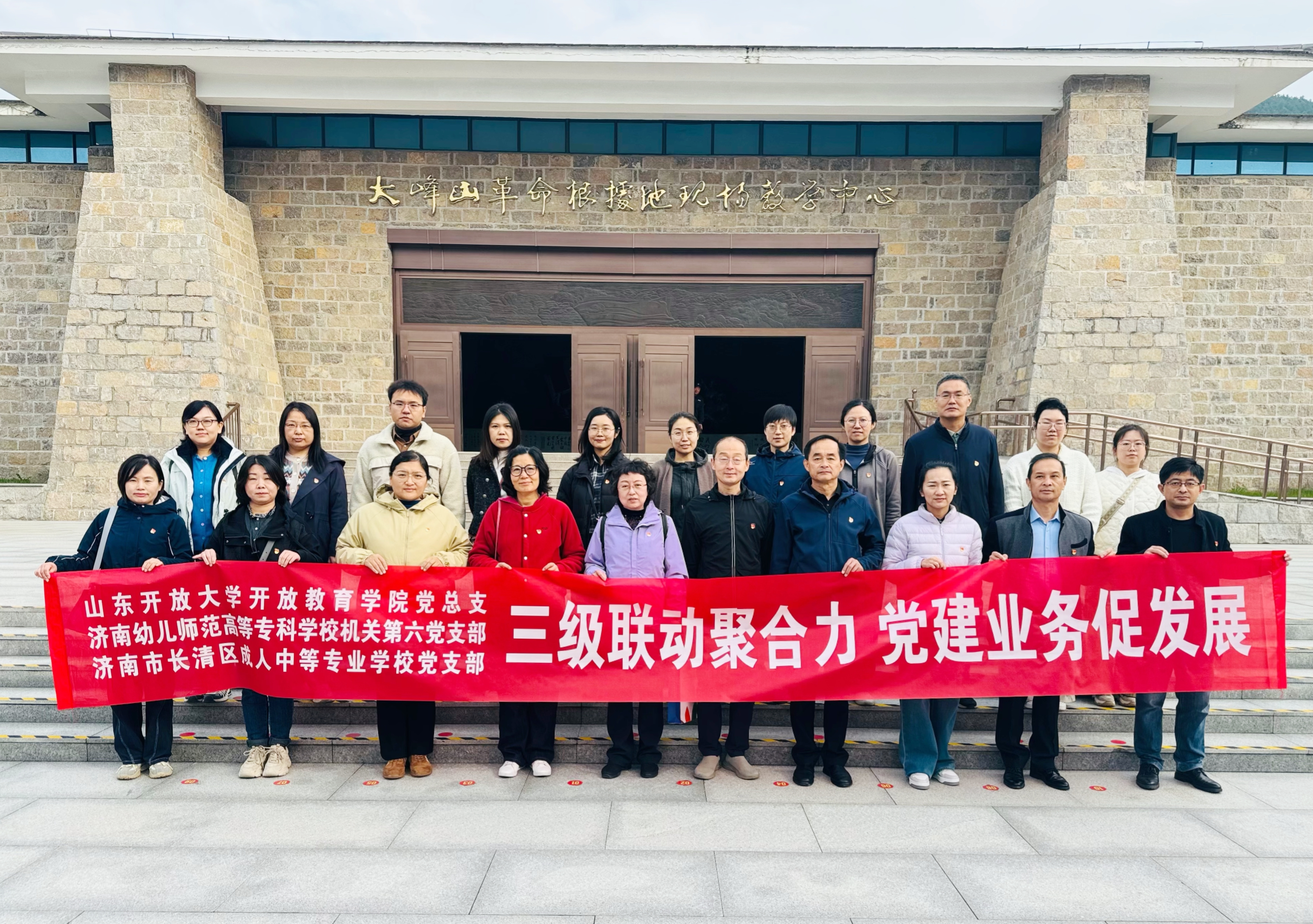 为加强开放教育办学体系之间的沟通交流,增强办学体系凝聚力,促进党建业务深度融合,10月23日上午,开放教育学院党总支与济南幼儿师范高等专科学校(济南开放大学)机关第六党支部、济南市长清区成人中等专业学校(长清开放大学)党支部联合开展“三级联动聚合力 党建业务促发展”主题党日活动。