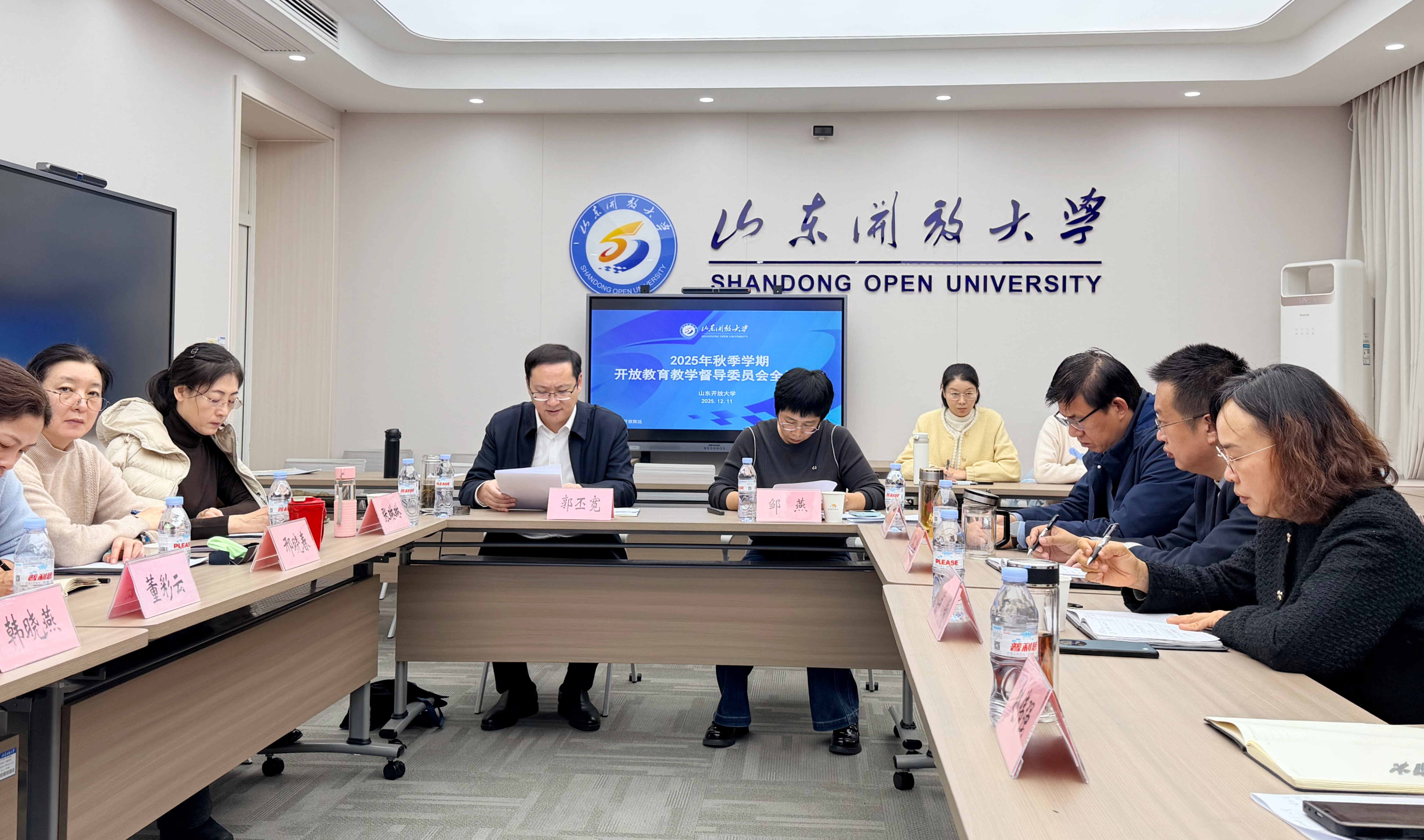 为持续提升教育教学质量,充分发挥开放教育教学督导委员会的作用,12月11日下午,学校2025年秋季学期开放教育教学督导委员会全体会议在舜耕校区智慧教室以线上线下相结合的方式召开。学校党委委员、副校长,开放教育教学督导委员会主任郭丕宽出席会议并讲话。