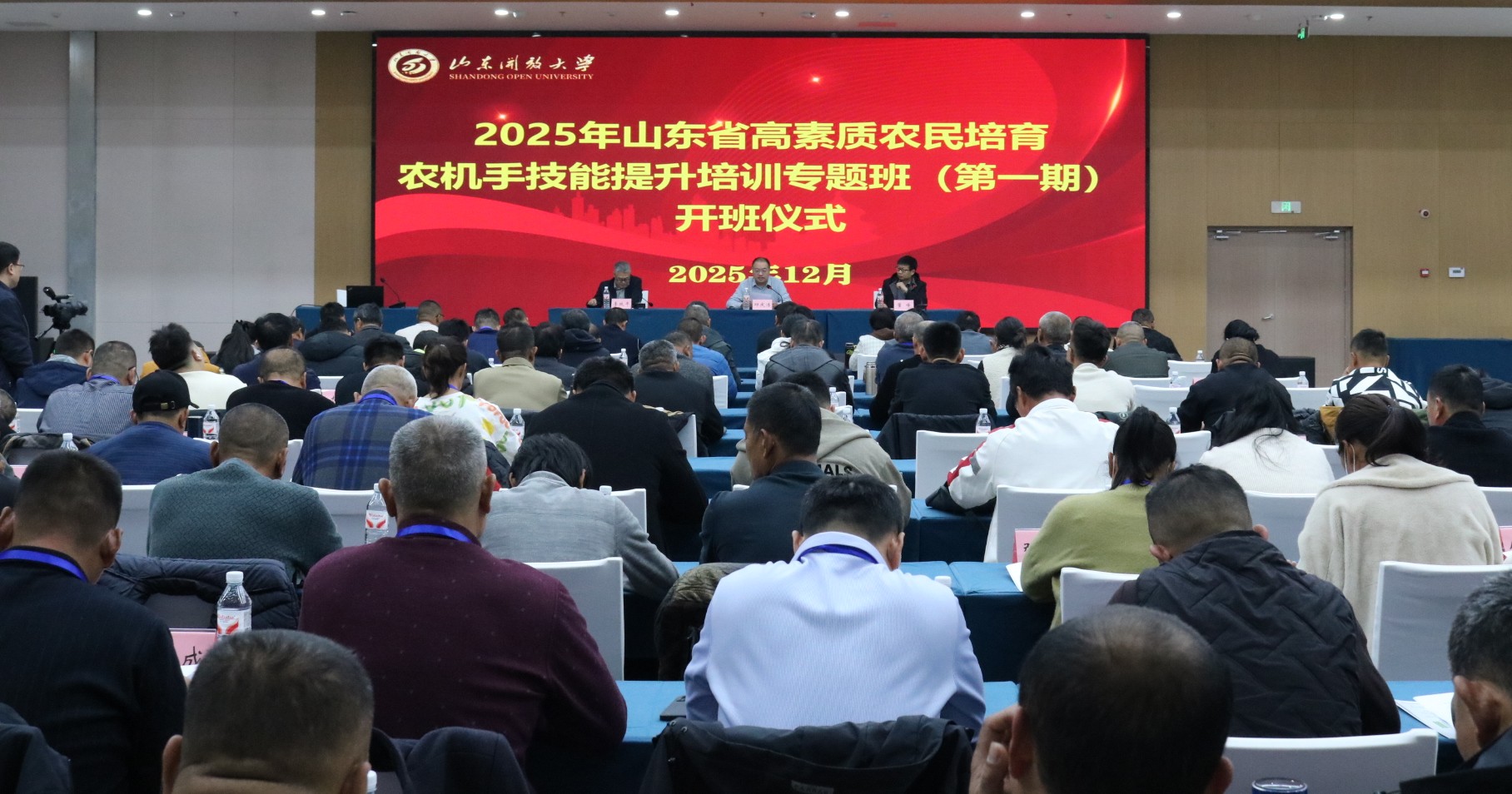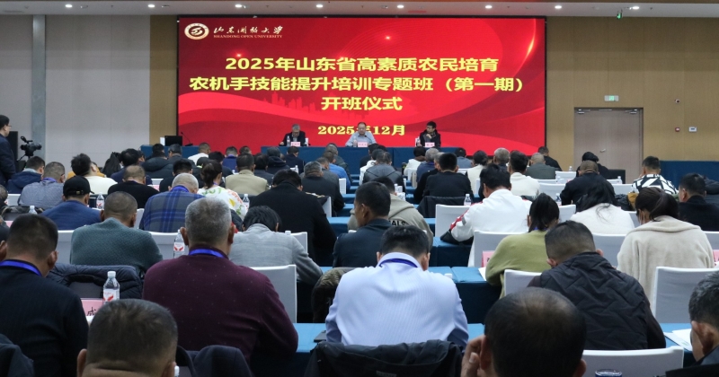 12月1日,为加快培育现代农业发展急需的高素质农机手队伍,促进农业机械化高质量智能化发展,助力乡村全面振兴,2025年山东省高素质农民培育农机手技能提升培训专题班(第一期)在我校高新校区正式开班。山东省农业农村厅农业机械化管理处副处长邱庆浩出席开班仪式并讲授开班第一课,黄三角智能农机装备产业研究院副院长李政平出席仪式,山东开放大学培训部主任董峰主持仪式。