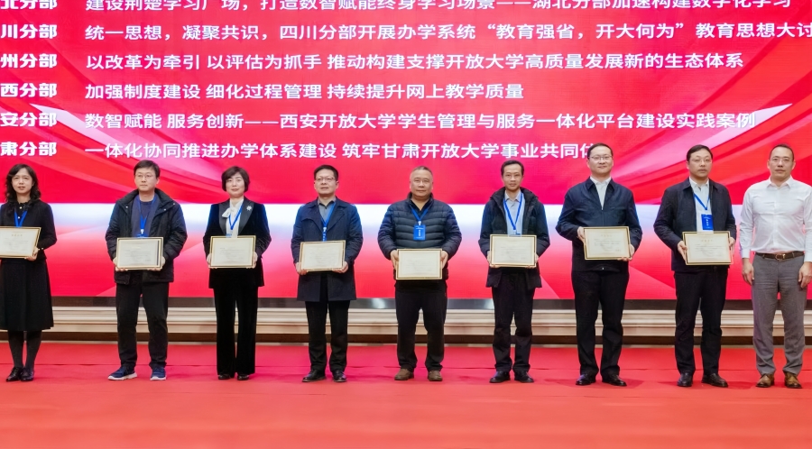本次活动以推动开放大学体系高质量发展为主题,深入学习贯彻党的二十届四中全会及全国教育大会精神,落实《教育强国建设规划纲要(2024—2035年)》和三年行动计划,围绕总结首轮分部办学评估成效、部署第二轮评估工作、交流以评促建经验等内容,统筹谋划国家开放大学未来五年质量建设工作。活动现场表彰了首轮分部办学评估“以评促建”优秀案例,我校报送的案例《条件改善三部曲:新基座·新规则·新动能》成功入选并获表彰。