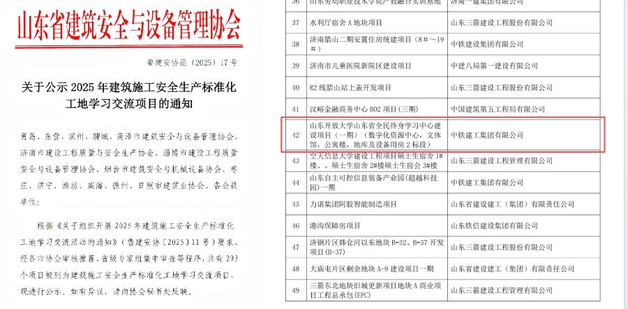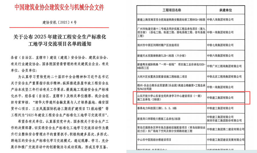 近日,山东省全民终身学习中心建设项目获得多项国家级及省市级工程奖项。其中,一标段工程入选济南市2025年房屋建筑工程智慧工地项目;二标段工程获得2025年全省住房城乡建设系统重点工程创新创优劳动竞赛奖项,成功入选2025年全国及山东省安全生产标准化工地学习交流项目。