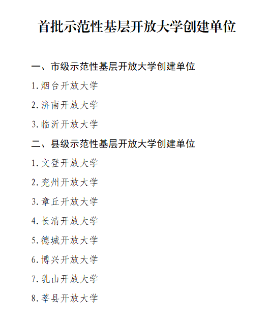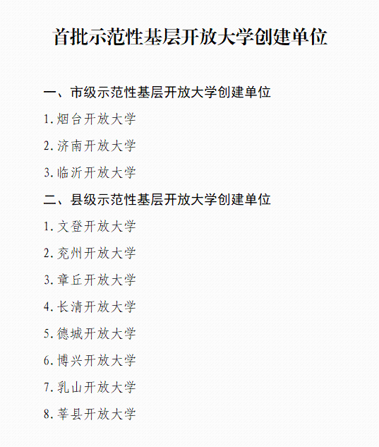 8、山东开放大学首批示范性基层开放大学创建单位名单公布
