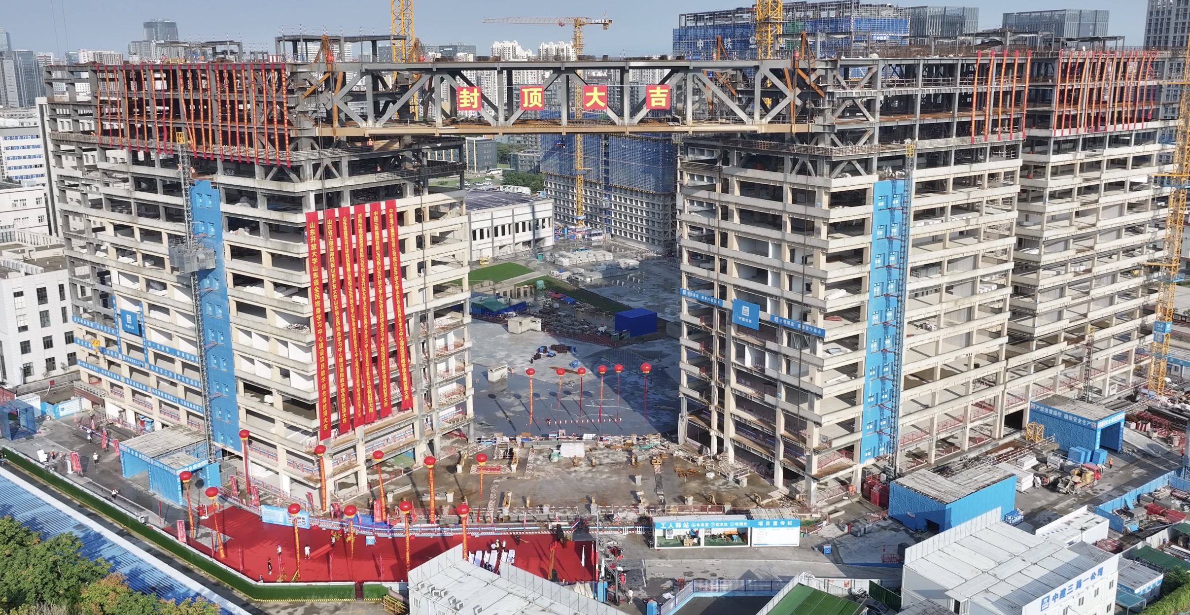 8月16日上午10时,随着近1000吨重的连廊桁架升至顶层,山东开放大学山东省全民终身学习中心教学综合楼宣告封顶。