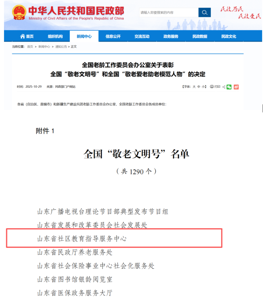 9、山东省社区教育指导服务中心获评2025年度全国“敬老文明号”