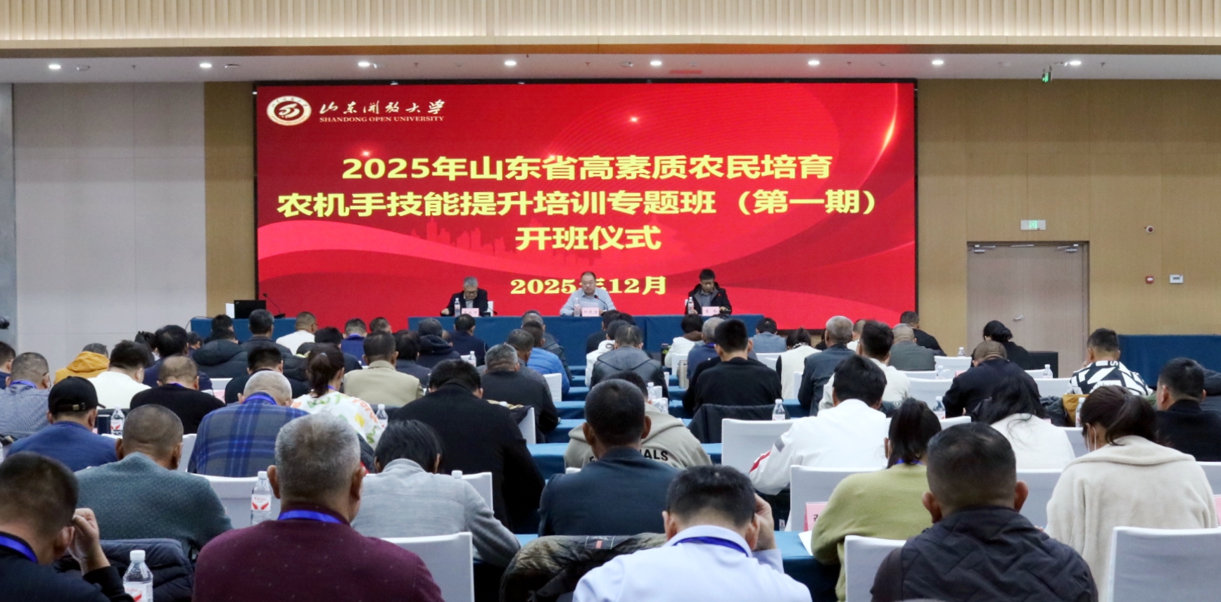 12月1日,为加快培育高素质农机手队伍,促进农业机械化高质量智能化发展,助力乡村全面振兴,2025年山东省高素质农民培育农机手技能提升培训专题班(第一期)在我校高新校区开班。山东省农业农村厅农业机械化管理处副处长邱庆浩出席开班仪式并讲授开班第一课,黄三角智能农机装备产业研究院副院长李政平出席开班仪式,山东开放大学培训部负责人主持仪式。