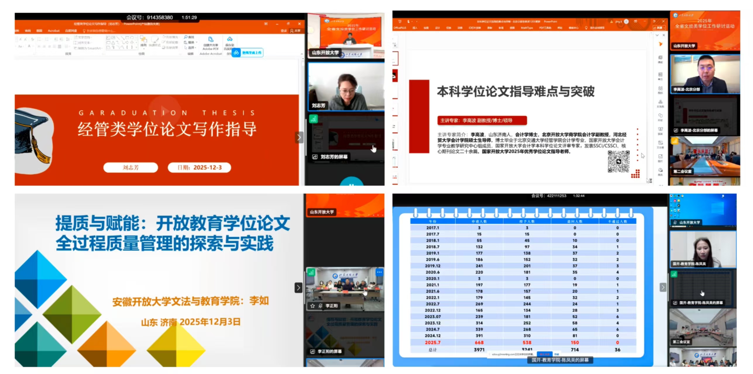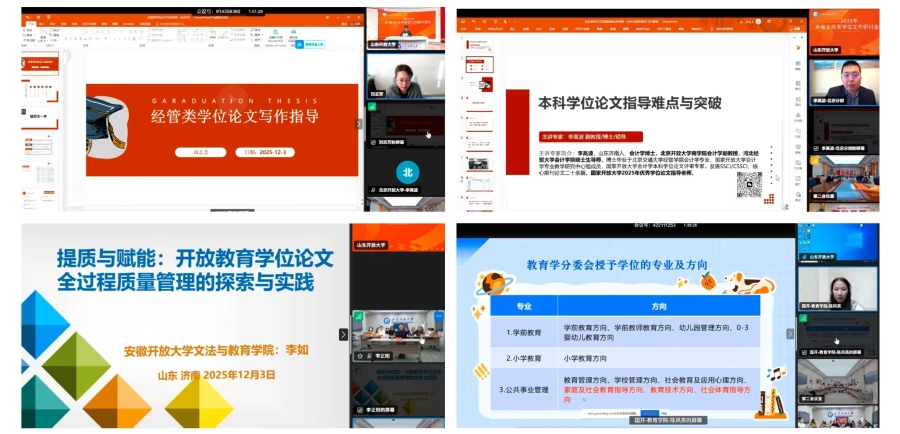 本次研讨活动进一步明确了文经类各专业工作教学团队下一步学位工作的重点任务和方向,为提升人才培养质量和全省开放教育高质量发展注入强劲动力。全省文经类学位论文工作相关教师近500人参加了活动。