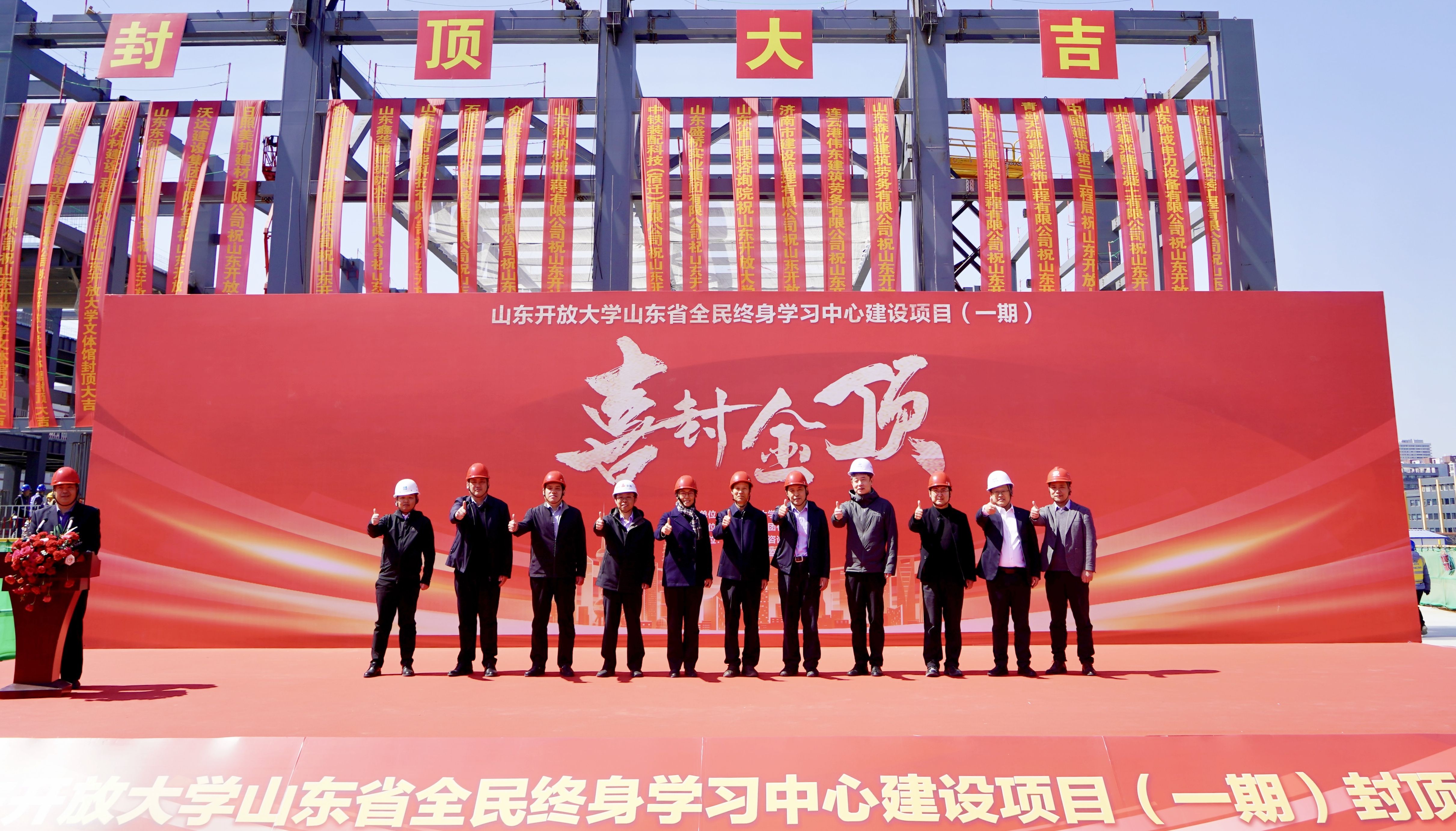 3月29日上午,山东省全民终身学习中心建设项目(一期)文体馆举行封顶仪式。学校党委书记徐文谋,党委副书记、校长司家军出席仪式。