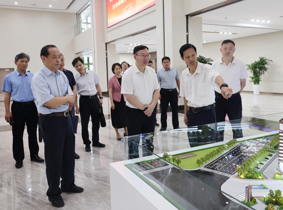 调研期间,张涛一行观看了山东省全民终身学习中心建设项目(一期)宣传片,并现场察看了项目沙盘模型。