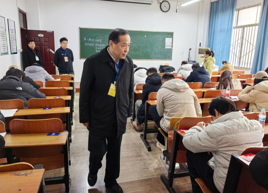 1月17日至18日,开放教育2025年秋季学期期末纸质考试在全省154个考点顺利进行。学校党委副书记、校长司家军,党委委员、副校长郭丕宽分别带队前往部分考点开展考试巡视工作。