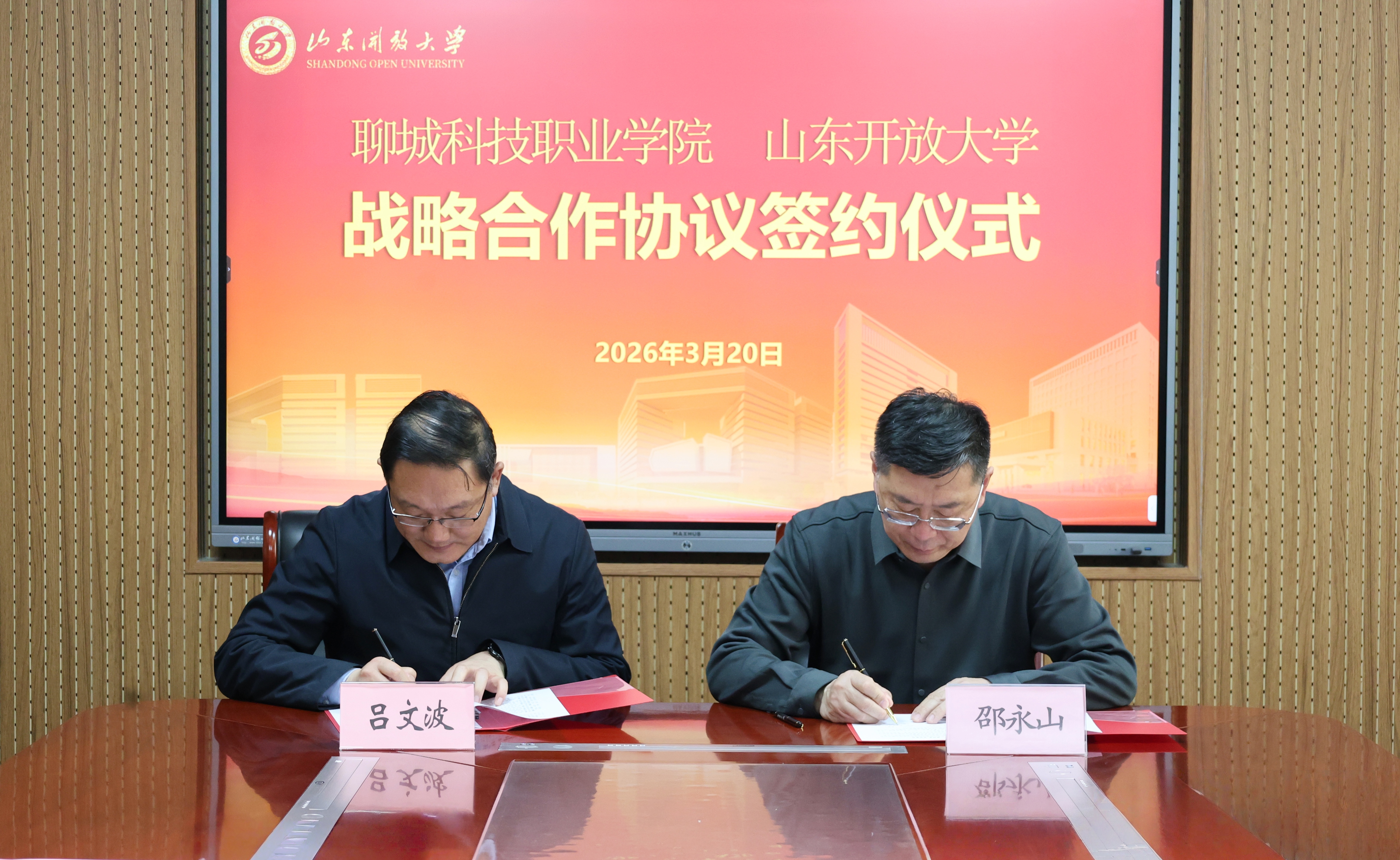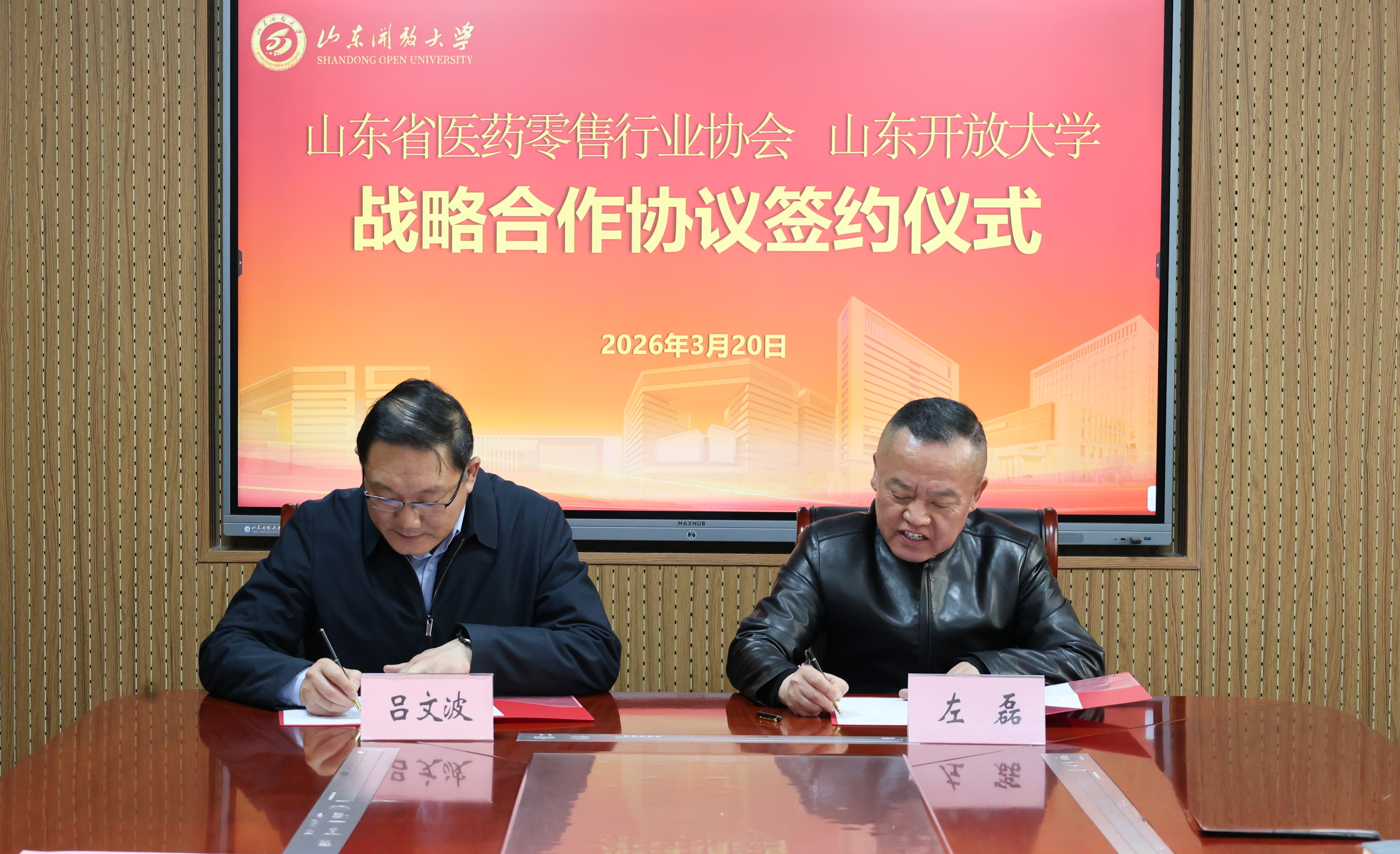 3月20日上午,山东开放大学与聊城科技职业学院、山东省医药零售行业协会在千佛山校区举行战略合作协议签约仪式。聊城科技职业学院党委委员、副院长邵永山,山东省医药零售行业协会秘书长左磊出席活动,学校党委委员、副校长吕文波出席并致辞。
