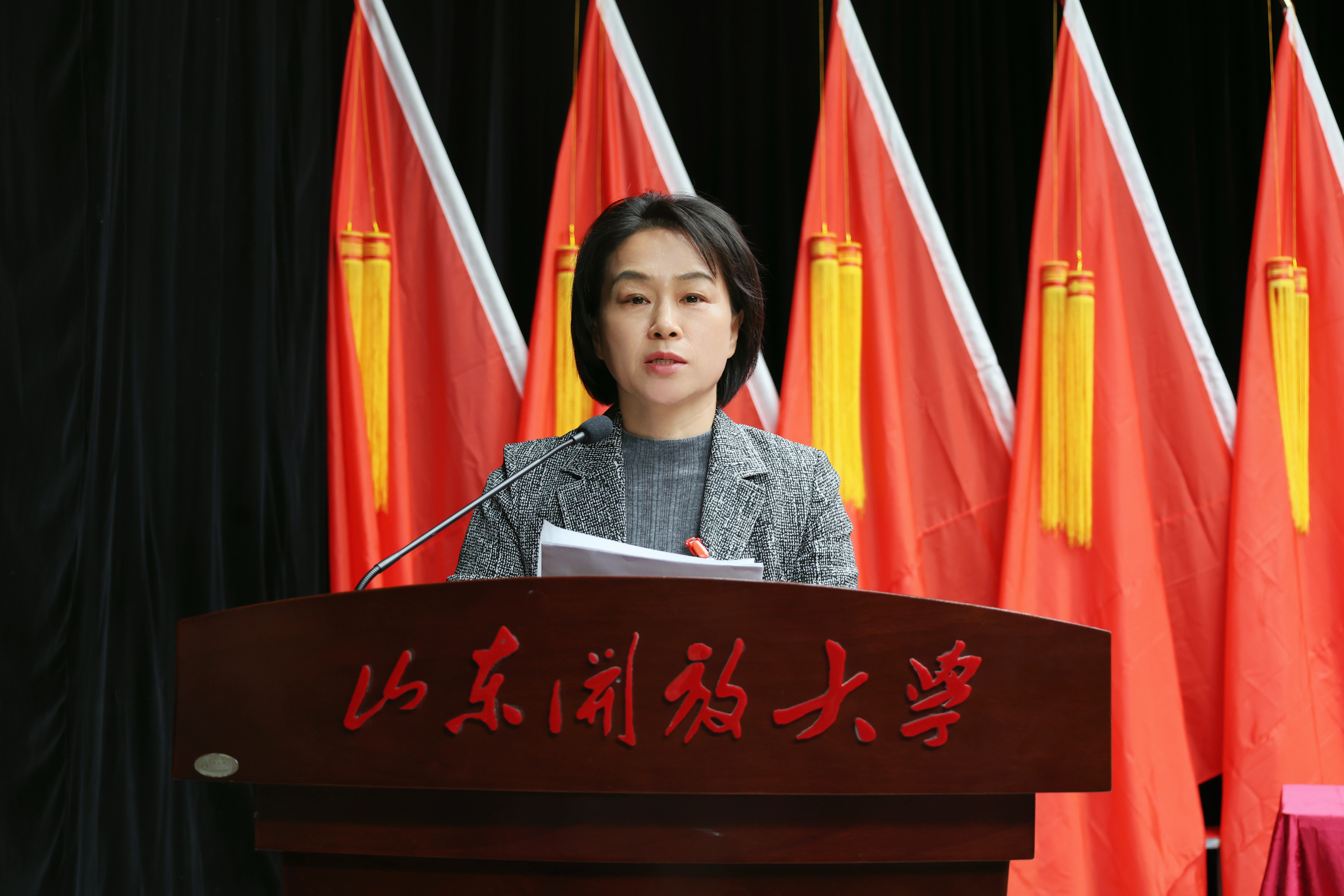 党委委员、副校长宁继红作《山东开放大学“十五五”事业发展规划(征求意见稿)》说明